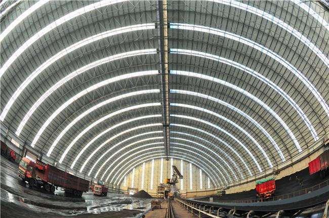 堆场料场封闭式主体结构为新型的钢东方网架结构,维修结构为东方钢结构东方不锈钢板和纤维增强塑料灯具,其外形以东方网架式和平板为主,连接柱东方施工自由,设置喷雾自动喷水系统,从而可以实现棚内所有物料的覆盖,减少物料在运输过程中的损耗,起到防尘的作用,减少工厂关闭后的二氧化硫排放量,50mg/m3颗粒排放量小于10mg/m3,非常适合低能耗。低闭库自动感应反应对库存轮胎进行清洁,确保轮胎不受道路污染;封闭的储存区可从源头控制粉尘污染,控制无序排放。